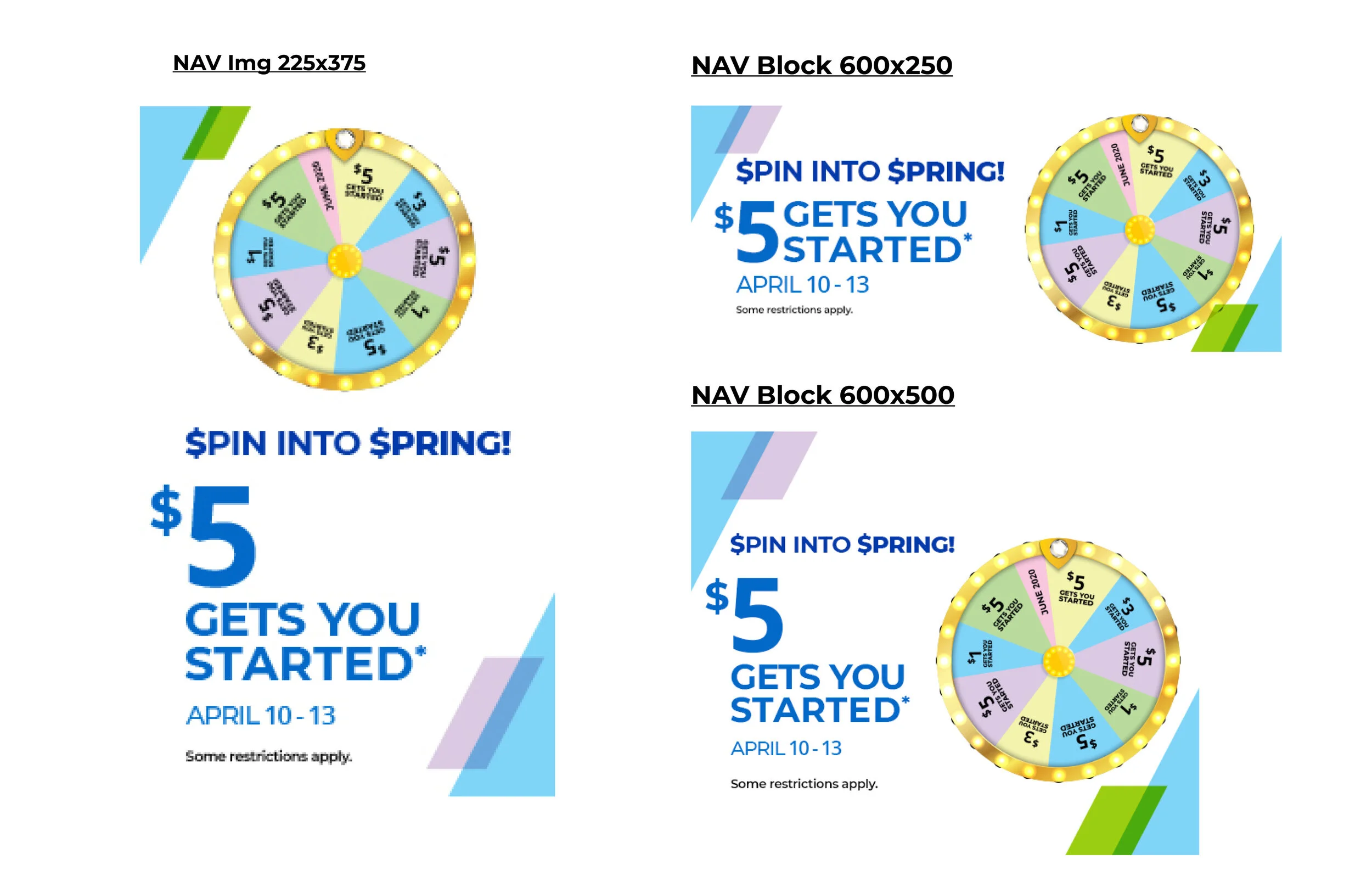 APril 2020 | $5 Gets You Started “Spin the wheel” Campaign